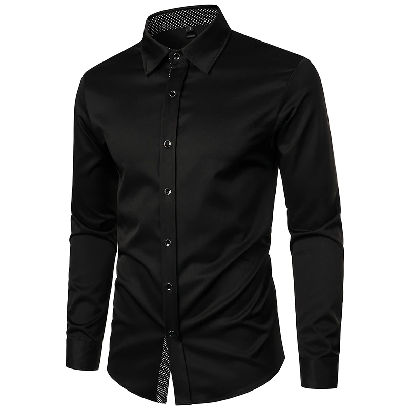 In zwart oogt het overhemd krachtig en mysterieus, terwijl het contrast van een licht binnenaccent zorgt voor een geraffineerde, stijlvolle twist. Ideaal voor avondgelegenheden of formele events.